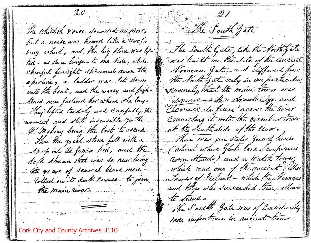 Scope and Content1. Nov 1887 Copy of MS. 'Description, with Notes and Anecdotes of the Views of Old Cork Drawn in Watercolours from Authentic Sources, By John Fitzgerald of Cork City'. Sketch of 'The South Gate and County Gaol 1798'. 'Respectfully Inscribed to The Reverend Father Hurley By John Fitzgerald (Bard of the Lee) and Artist of the Views'. Stamped by Library, Cathedral, Cork. Includes description of North Gate Bridge and City Gaol, The Old City Gaol, The South Gate, Gallows Green, The Exchange and Castle Street, Elizabeth Fort and St Finbarr's Cathedral, etc. (c63pp)