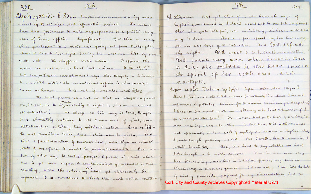 The collection is of considerable interest to the study of Irish nationalism from 1902 onwards, and particularly for the 1914-23 period, and also the early years of the Irish Free State. It is also of interest to Cork local history including that of Cork Corporation.