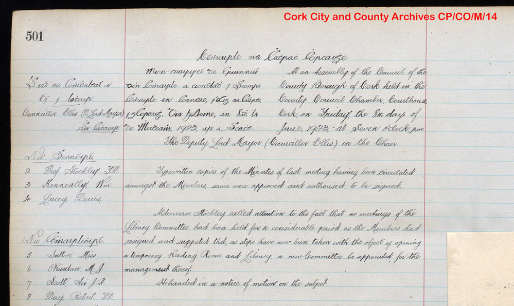 Gaelic League Representatives on Library Committee (pp570, 573) (26, 29 Oct 1923)