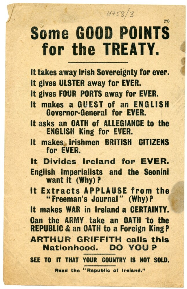 Handbill Anti-Treaty Sinn Féin/IRA. 'Some GOOD POINTS for the TREATY'.