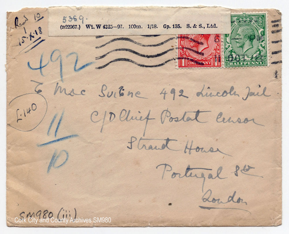 TitleLetter from Muriel MacSwiney to 'My own darling Terry', husband Terence MacSwiney, Lincoln Gaol, London.