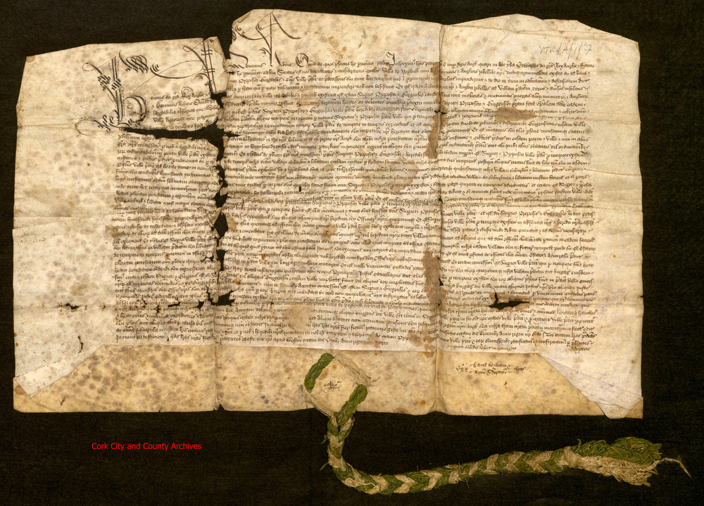 Scope and Content1) Charter in Latin granted in the second year of Richard III’s reign to Mayor & c. of Youghal, reciting the rights and privileges granted to the town by Edward IV